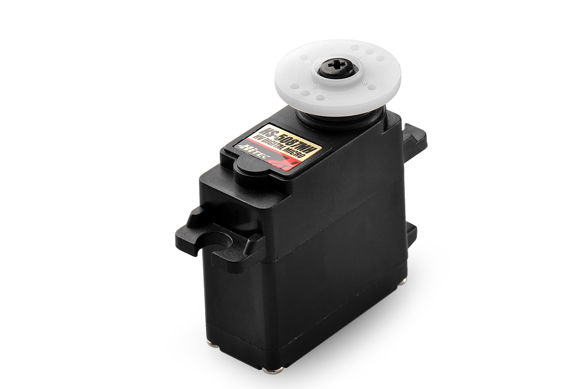 Silné digitální mikroservo s kovovými převody a kuličkovým ložiskem se zvýšeným napájecím napětím pro elektrolety, větroně a menší motorové a akrobatické modely a elektrovrtulníky.