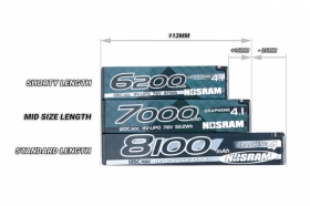 Tato nová velikost prodlužuje baterii o 16 mm oproti délce akumulátoru Shorty 97 mm a činí ji o 26 mm kratší než standardní délka akumulátoru 139 mm.