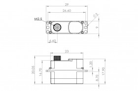 Velmi silné a rychlé programovatelné tenké digitální mikroservo s titanovými převody uloženými na jednom kuličkovém, jednom samomazném a dvou jehlových ložiscích. Díky přesným předepjatým převodům s minimálními vůlemi a ploché krabičce s výškou 9 mm je zvláště vhodné pro ovládání křidélek a klapek v RC házedlech F3K, malých větroních a motorových modelech s tenkými profily křídla, jako jsou F5D modely pro závody okolo pylonů. Pro dokonalé chlazení i při vysokém zatížení je servo uloženo v hliníkové krabičce.