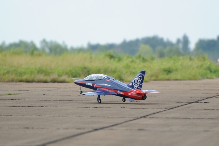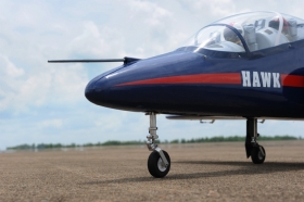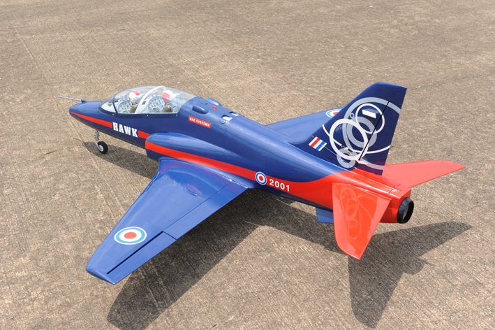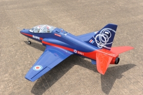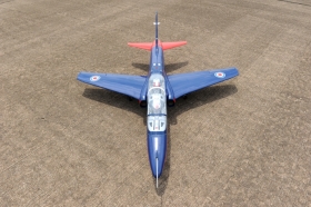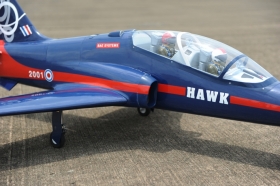 Polomaketa britského cvičného proudového letounu pro pohon dmychadlem o průměru 120 mm se střídavým motorem a 12s Li-poly akumulátorem pro zkušené piloty "jetů".