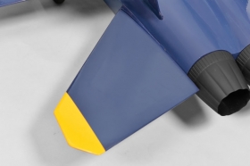 Model je dodáván v efektní modro-žluté barevné kombinaci; celý model je potažen nažehlovací fólií Oracover.