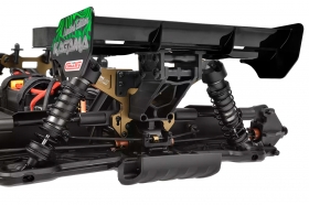 Srdcem modelu Kagama Limited Edition je jeho nekompromisní základ z hliníku 7075 – navržený pro extrémní odolnost a přesné ovládání. Zlatě eloxované hliníkové plato podvozku z hliníku 7075 poskytuje nejen bezkonkurenční pevnost, ale také výjimečný styl. Pro další zpevnění konstrukce jsou hnací ústrojí zajištěny CNC obráběnými přepážkami z hliníku 7075, které zabraňují nežádoucímu pohybu a zajišťují plynulý a spolehlivý přenos výkonu i při extrémním zatížení. Mezitím 6mm hliníkové věže tlumičů 7075 v kombinaci s novými distančními vložkami tlumičů poskytují pevnou podporu zavěšení, což umožňuje osvědčeným tlumičům Kagama konzistentně absorbovat nárazy – bez ohledu na to, jak tvrdě na truck tlačíte. Kromě toho hliníkový servo saver bell crank 7075 zvyšuje přesnost a odolnost řízení a zajišťuje přímé a citlivé ovládání za všech jízdních podmínek.