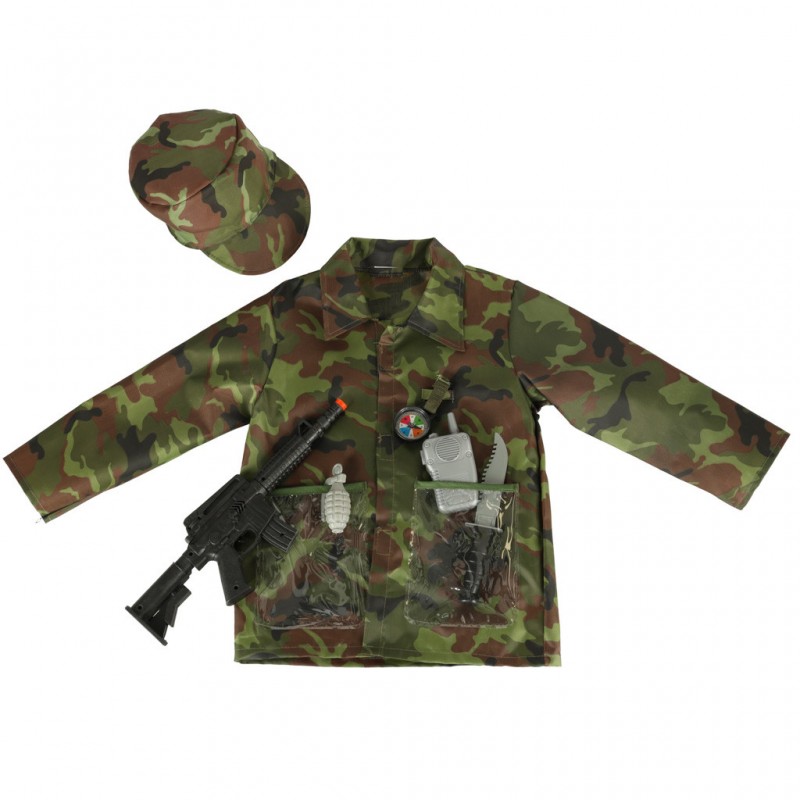 Udělat z vašeho malého hrdiny skutečného vojáka nebylo nikdy snadnější. V balení najdete bundu, čepici a neuvěřitelnou výbavu, která zahrnuje: