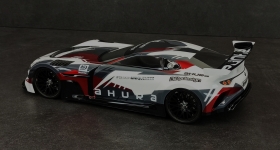 Čirá karoserie pro modely 1/10 GT je pokryta ochranou folií, vyrobena z velmi kvalitního polykarbonátu, balení obsahuje maskovací nálepky včetně samolepek.