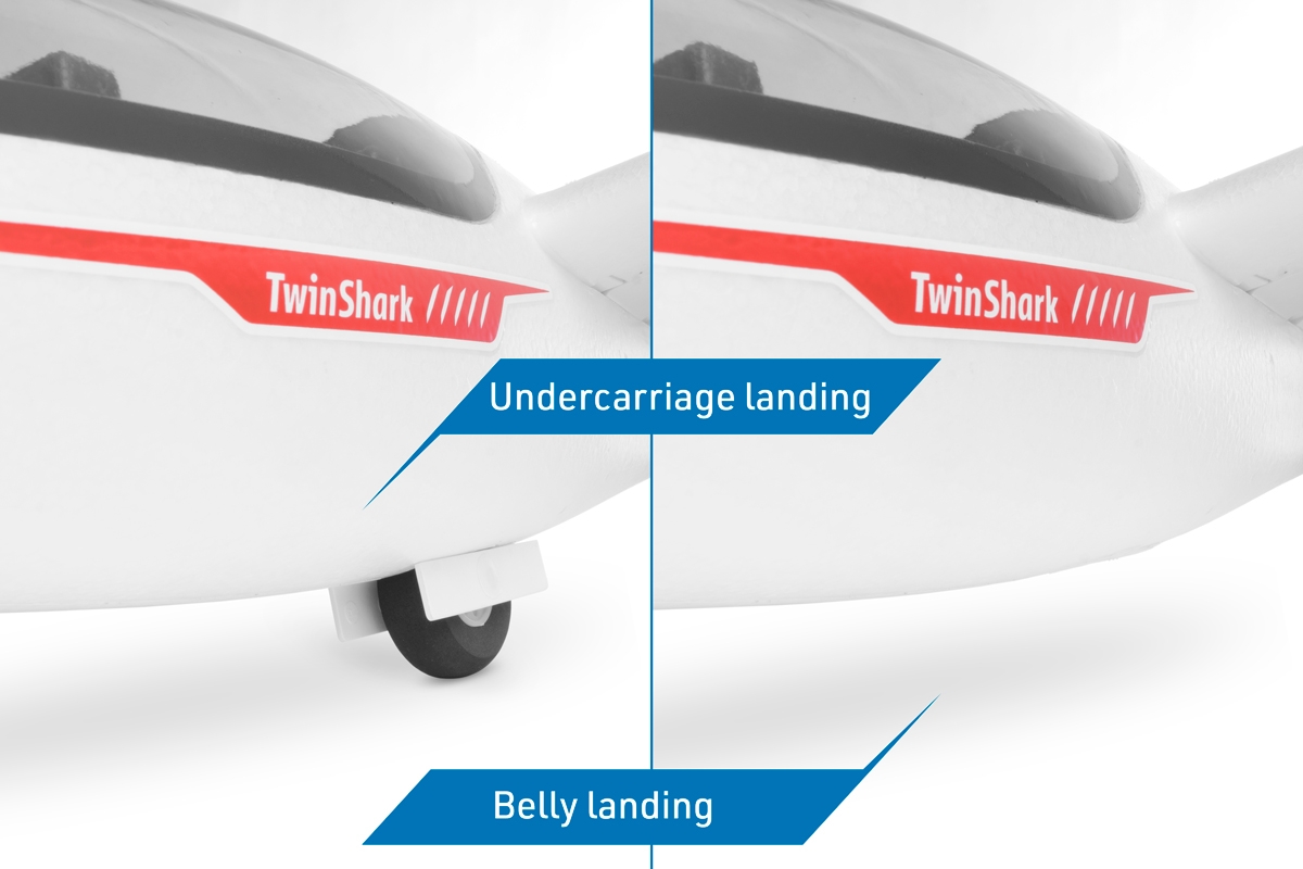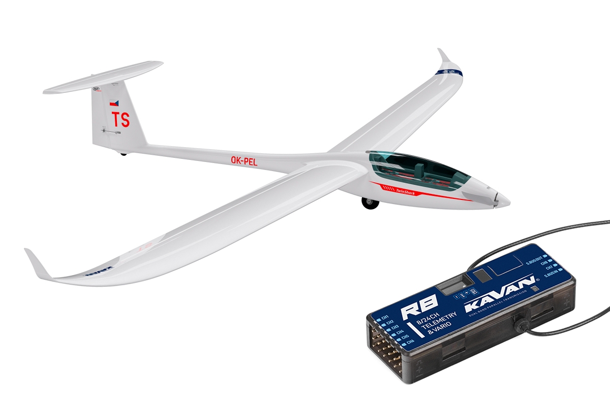 Pro napájení budete potřebovat LiPo čtyřčlánek s kapacitou 2600–3300 mAh se zatížitelností aspoň 30C. Konkrétní typ volte tak, aby vám bez dalšího dovažování co nejlépe vycházela správná poloha těžiště.Pro ovládání modelu v nouzi vystačíte i se šestikanálovou počítačovou RC soupravou bez speciálních funkcí – v základním provedení jsou křidélka a klapky zapojeny pomocí Y-kabelů vždy jen do jednoho kanálu. Ideální je samozřejmě použití aspoň sedmikanálové počítačové RC soupravy umožňující nezávislé ovládání křidélek a klapek dvěma servy a jejich mixování v roli butterfly brzdy (obě křidélka se vychylují souhlasně nahoru a obě klapky dolů), což dnes umí i cenově dostupný Radiolink AT9S nebo AT10II nebo Futaba T6K či T10J. V takovém případě je nutno nahradit Y-kabely křidélek a klapek v trupu čtyřmi jednotlivými (15–30 cm) prodlužovacími kabely. V návodu samozřejmě nechybí důkladná tabulka s prověřeným výchozím nastavením výchylek kormidel (včetně mixů), abyste Twin Sharka snadno připravili k letu, i když to třeba bude váš první větroň s „plnou mechanizací“ křídla.