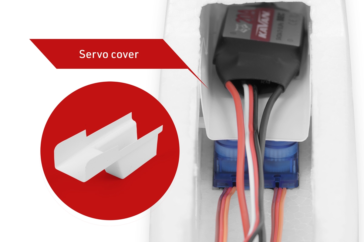 ARF set obsahuje: trup vylisovaný z EPO s namontovaným střídavým motorem, sklopnou vrtulí 7x6", regulátorem otáček KAVAN R-20B a 2 servy, křídlo vylisované z EPO s instalovanými 2 servy, ocasní plochy z EPO, uhlíkovou trubkovou spojku křídla, přijímač KAVAN R6 a podrobný návod ke stavbě a létání.