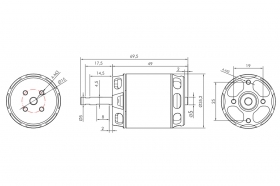 Montáž motoru: KAVAN PRO 3548-900 je konstruován pro přední i zadní montáž. Při přední montáži za čelo motoru použijte čtyři šrouby M3, které zasahují do čela motoru v rozmezí 3,5-4 mm. Motorová přepážka by měla být z 5 mm letecké překližky. Sada pro zadní montáž (upevňovací kříž, unašeč vrtule pro zadní montáž) je dodávána spolu s motorem.