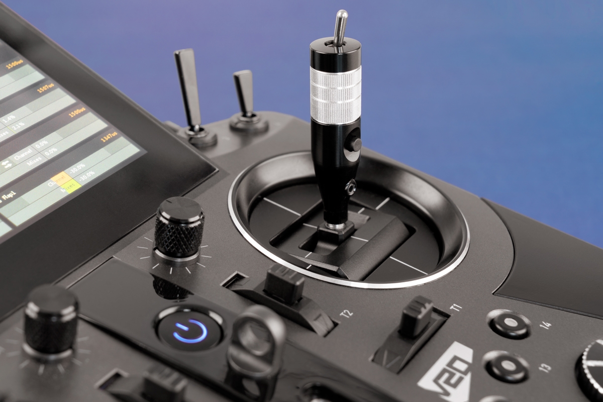 Ergonomická tuningová páka s hliníkovým eloxovaným tělem a CNC broušenou středovou částí. Kompatibilní s vysílači KAVAN V20/V20 Pro. Obsahuje 2polohový přepínač a tlačítko pro snadné ovládání v pultovém uspořádání. Instalace vyžaduje pájení. Délka 55 mm, průměr 12 mm. Vyráběno v Česku.