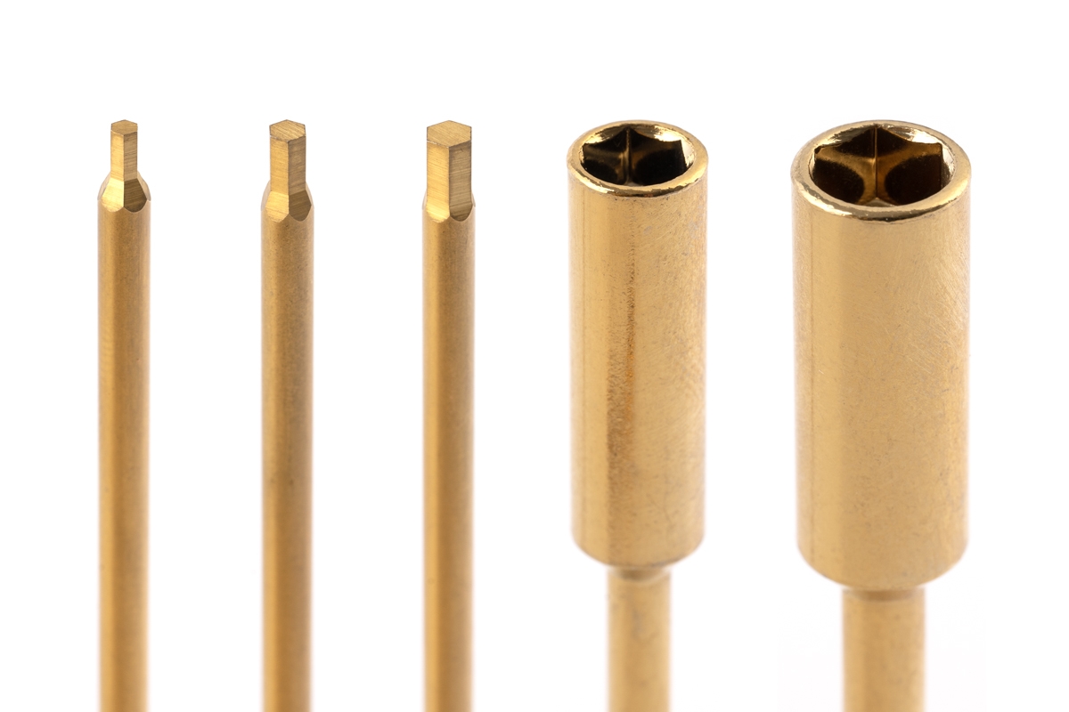 Součástí balení jsou bity z tvrzené oceli s titanovou povrchovou úpravou, které spolehlivě odolají běžnému zatížení i krouticímu momentu. K dispozici jsou velikosti 1,5mm, 2,0mm, 2,5mm, 5,5mm a 7,0mm.