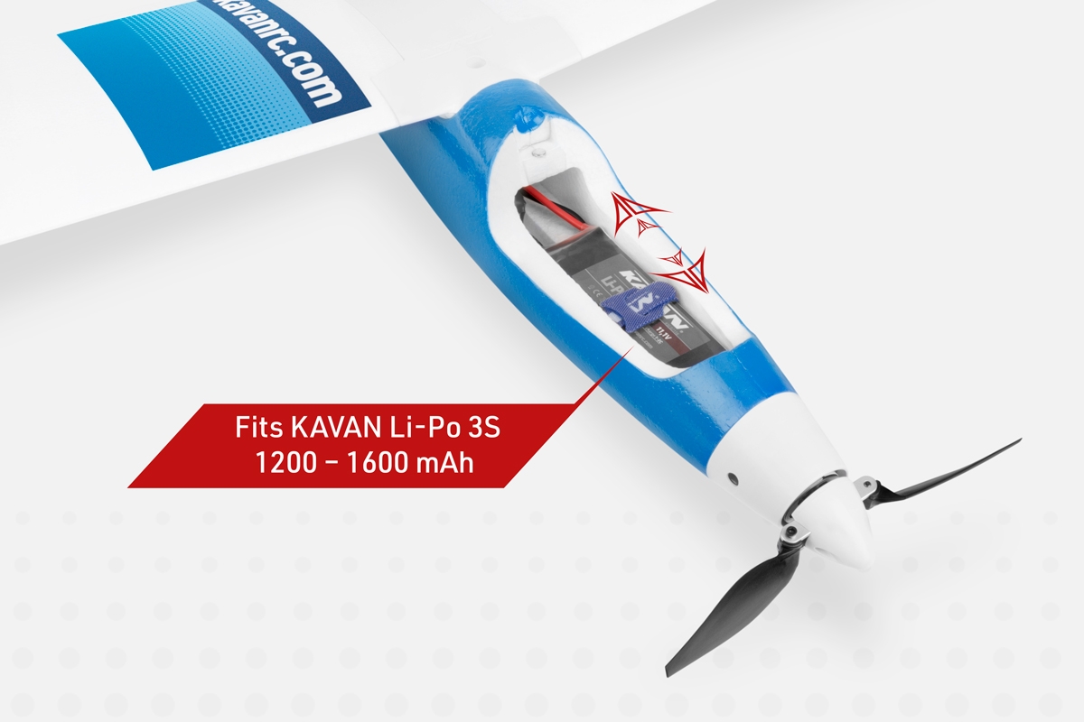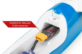 Přední část trupu modelu je zhotovena z vysoce odolného pěnového EPO (extrudovaného polyolefinu); ocasní nosník je tvořen uhlíkovou trubkou. V přídi je nainstalován střídavý elektromotor C2714-1450 se sklopnou vrtulí 7x6“ a regulátorem KAVAN R-20B s BEC stabilizátorem napájení. Kryt kabiny je odnímatelný, upevňuje se pomocí čepu vpředu a magnetu vzadu. V přídi najdete dostatek prostoru pro pohonný akumulátor a přijímač. Serva směrovky a výškovky jsou uložena v trupu pod křídlem, kormidla ovládají lanovody.