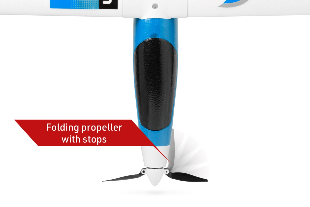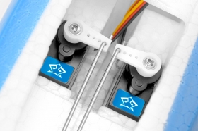 Odnímatelné motýlkové ocasní plochy jsou z rovněž z pěnového EPO, k trupu se upevňují plastovým šroubem.