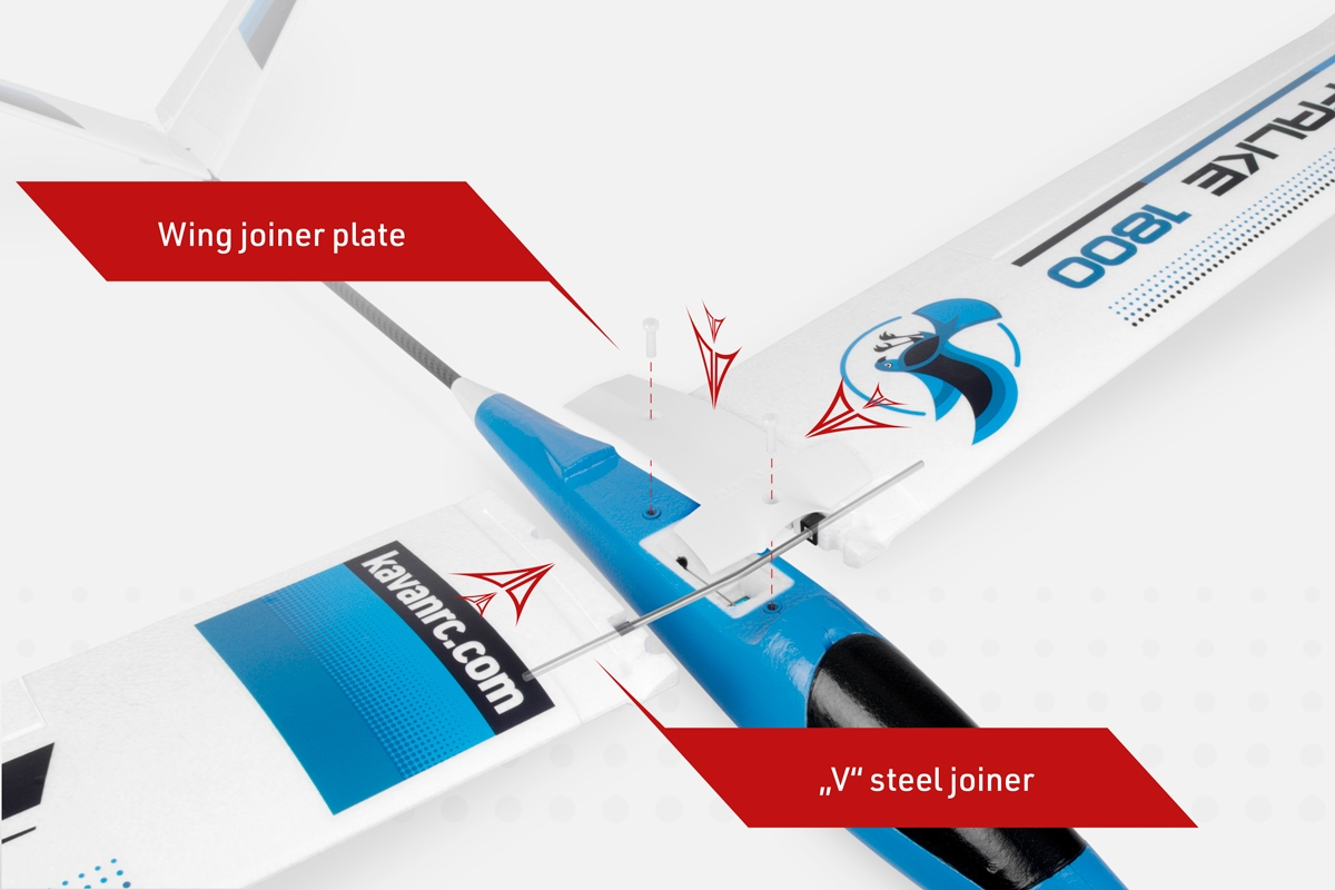 Křídlo modelu z pěnového EPO je dvojdílné s uhlíkovým nosníkem a s ocelovou drátovou spojkou; k trupu se upevňuje dvěma plastovými šrouby. Křidélka jsou ovládána nezávisle dvěma servy s krátkými přímými drátovými táhly.