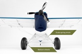 Hlavní podvozek je pevný, duralový s odpruženými maketovými vzpěrami. Drátová ostruha je spřažená se směrovkou.