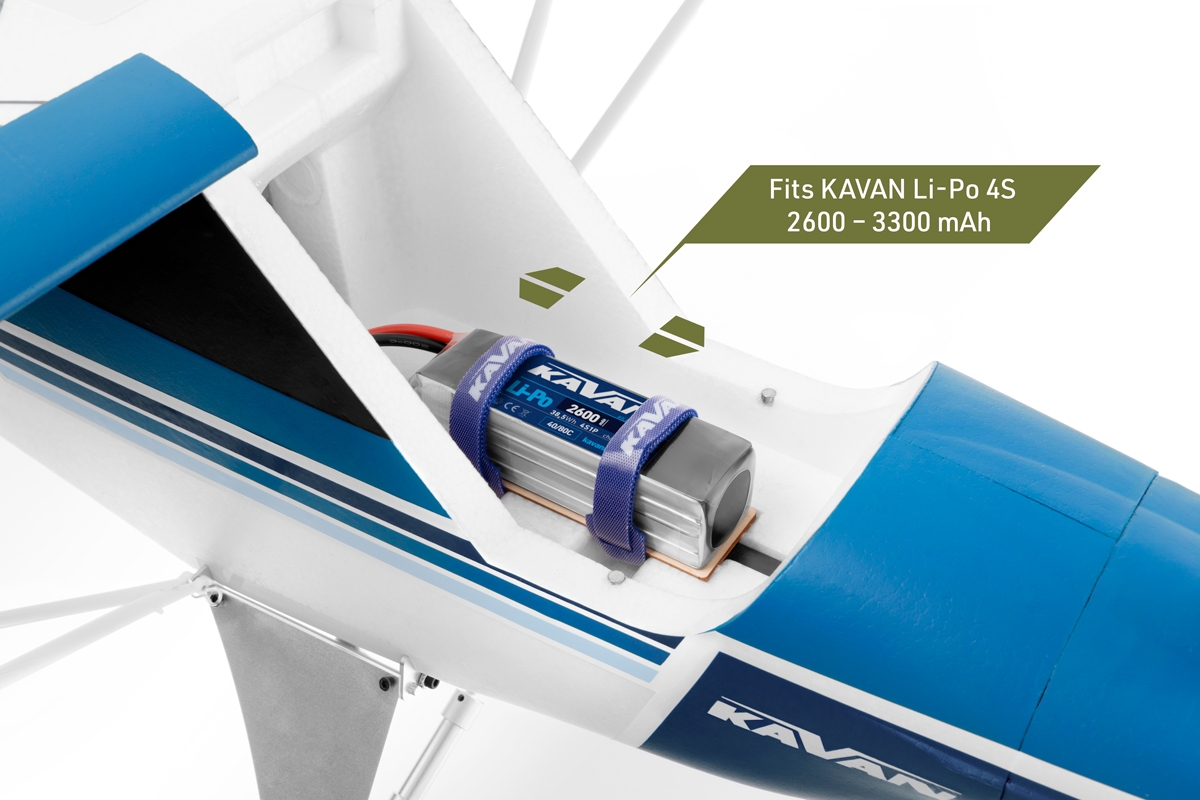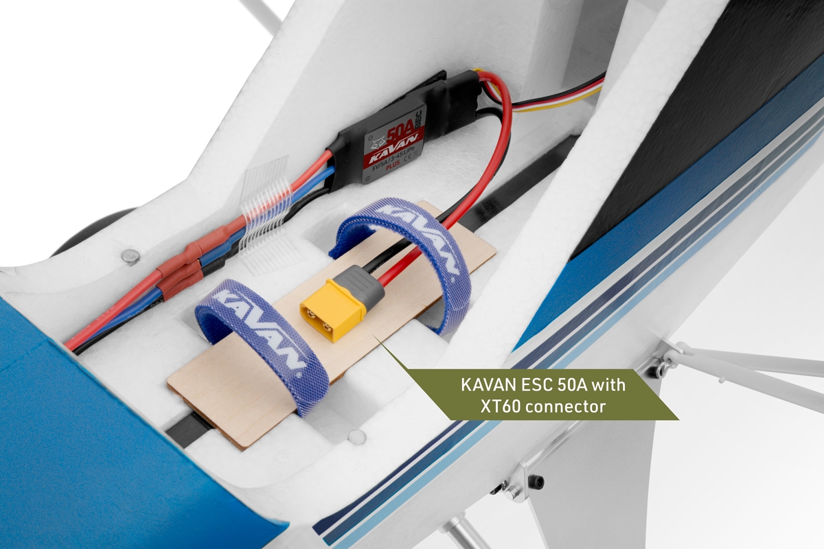 Trup modelu je zhotoven z vysoce odolného pěnového EPO (extrudovaného polyolefinu) s důkladnými vnitřními uhlíkovými výztuhami. V přídi je nainstalován střídavý elektromotor C3548-800 s třílistou vrtulí 10×6“ a regulátorem KAVAN R-50SB Plus s výkonným BEC stabilizátorem napájení potřebným pro napájení 6 serv na palubě. V přídi pod odnímatelným krytem najdete dostatek prostoru pro pohonný akumulátor.