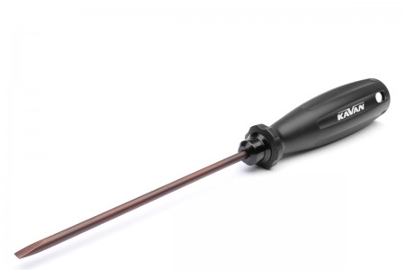 KAVAN plochý šroubovák s ergonomickou protiskluzovou a velmi lehkou plastovou rukojetí. Velikost klíče je vyznačena na hliníkové vložce rukojeti.