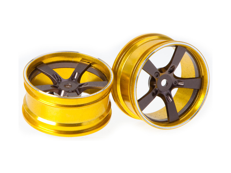 Killerbody Vám nabízí tuningové hliníkové disky pro RC modely aut 1:10. Provedení disků je v šedém paprskovém designu Camaro 2011 se zlatým ráfkem. Rozměr disku ø 52 x 26 mm, unašeč je šestihran 12 mm s offsetem 18 mm. Balení obsahuje 2 ks.