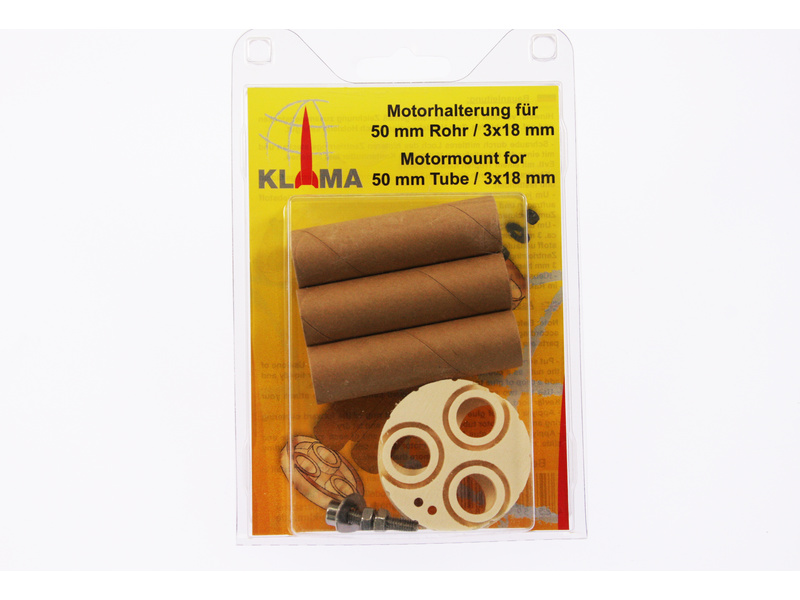 Klima Držák motoru 50 mm / 3x 18 mm, Za účelem provozování větších modelů které mají trubku o průměru 50 mm se třemi motory o průměru 18 mm, byl vyvinut speciální držák motoru. Ten sestává ze tří trubek 18 a kroužků o průměru 48,8 mm. V sestavě je i vytahovák.