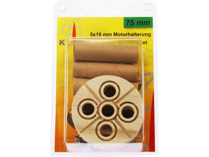 Stavebnice Klima Držák motoru má 5 ks trubky o délce 75 mm a průměru 18 mm je určena do větších raket o průměru 75 mm s pěti 18 mm raketovými motory, kroužky mají průměr 72,4 mm.