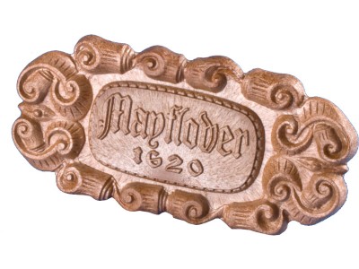 Krick dekorativní štítek plastový je určen k označení názvu modelu lodi Mayflower. Rozměry vnější 105x51mm.