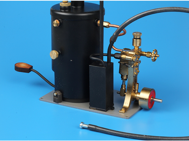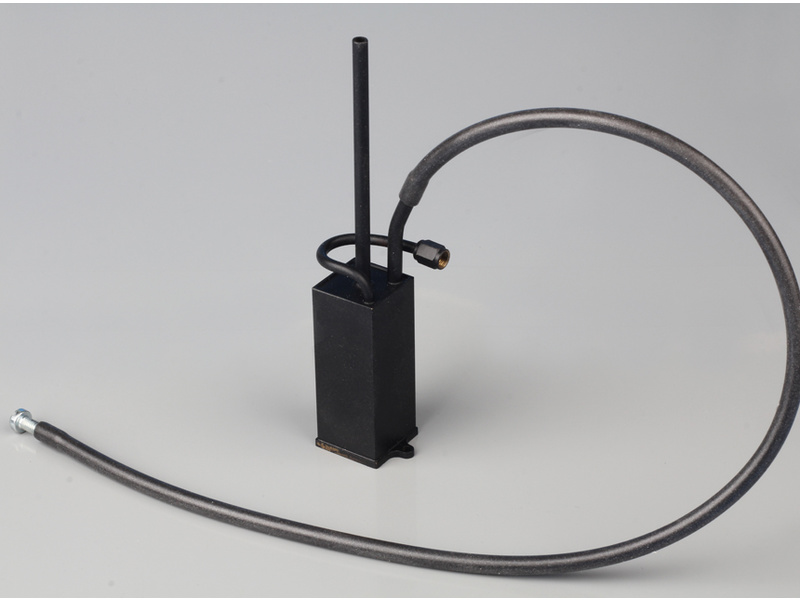 Kondenzátor má delší vývod než komín, ze kterého uniká suchá výfuková pára. Druhým kratším výstupem je stoupací potrubí, ke kterému je připojena vypouštěcí hadice, která se během provozu stroje uzavře. Pro vypouštění je vypouštěcí hadice otevřena a vložena do odpadní nádoby, a to za provozu, komín se nahoře uzavře, takže výfuková pára vytlačuje odpadní kondenzát. Rozměry: 20 x 20 x 50 mm. Separátor oleje a vody je dodáván jako souprava. Mosazné díly musí být pájeny.