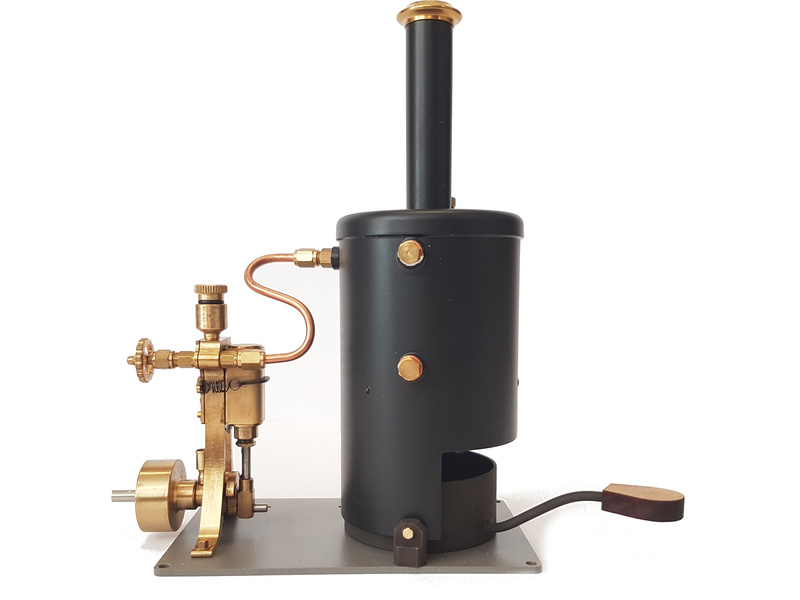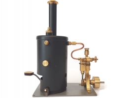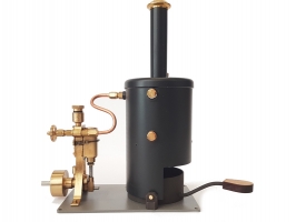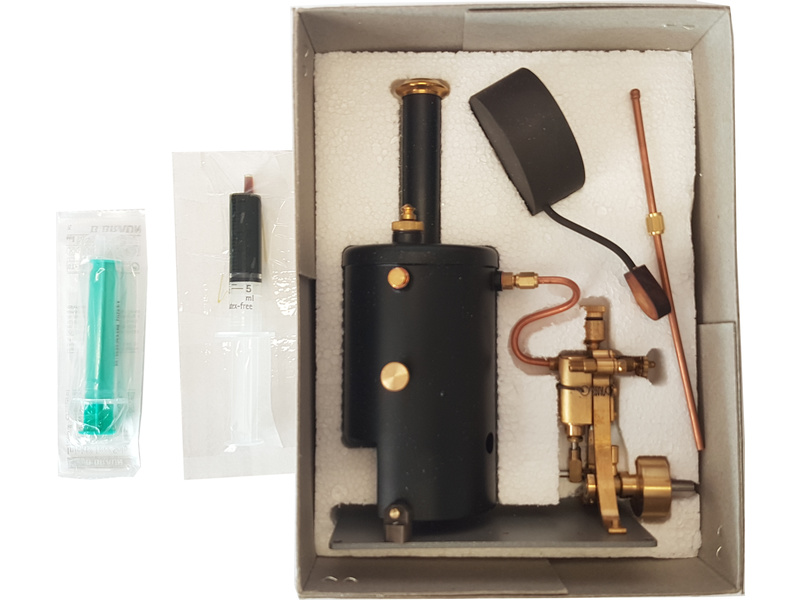 Jednoduchý maketový parní stroj pro autentický pohon modelů lodí. Parní kotel na tuhý líh pohání jedno-válcový parní stroj. Regulace množství páry je možná pomocí ručního ventilu.