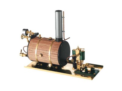 Parní stroj obsahuje několik komponentů, které pomohou vašemu modelu plout efektivně, výkonně a šetrně k okolí. Pístový motor se připojí pomocí kardanové spojky s hřídelí pro lodní šroub. Jedná se o oscilační dvouválcový motor, který lze regulovat pro chod vpřed, vzad a pro zastavení, regulovat lze rovněž velikost otáček v obou směrech. Řízení regulace a chodu motoru se provádí pomocí páky na motoru, ke které se připojí servo řízení.