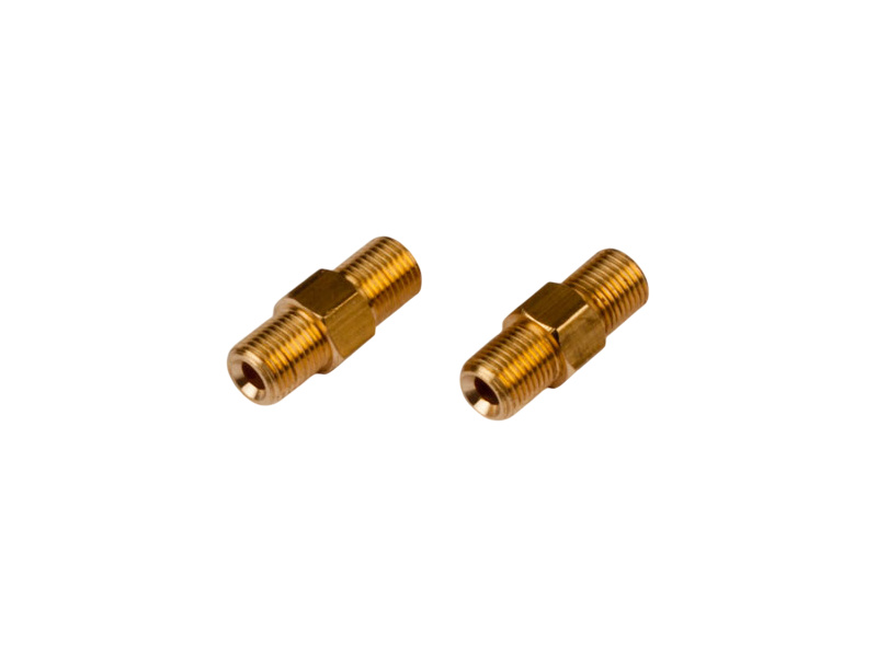 Krick mosazná spojka se závity M5x0.5 na obou koncích, pro pájení na 3mm trubku (2ks). Příslušenství pro parní stroje Krick.