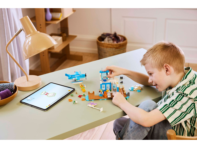 Tato funkcemi nabitá stavebnice dětem umožní přehrávat si vlastní příběhy ve známém prostředí Animal Crossing. Stejně jako ve videohře má letiště molo vedoucí na pláž, kontrolní věž a otevírací oranžovou bránu. Jakmile kluci a holky postaví model letadla, mohou cestující s letenkou nastoupit na palubu. Děti roztočí vrtuli hydroplánu a vydají se s minifigurkami pilota Wilbura a Tangy na nový ostrov.
