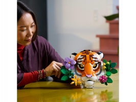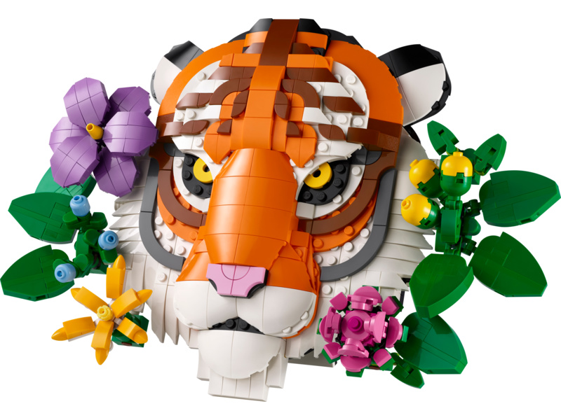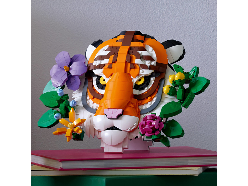 Tato dekorace s motivem divokého zvířete znázorňuje krásného tygra, který vykukuje zpoza dekorativních květin a rostlin. Pověste si model na zeď nebo ho vystavte na psacím stole nebo na polici díky vestavěnému stojanu. Všechny květiny jsou přizpůsobitelné a lze je přesouvat na různá místa – nebo můžete přidat další květiny z kostek ze stavebnic z kolekce LEGO Botanicals (prodávají se samostatně).