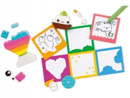 Kreativní veselá krabička obsahuje tipy na 10 rychle sestavitelných modelů, které dětem vykouzlí úsměv na tváři. Malí stavitelé mohou z těchto modelů sestavit 12 nových hraček a poskládat nekonečné množství vlastních zábavných výtvorů, se kterými si vyzdobí pokojíček. Modely pavouka, včely a ptáčka mají závěsné prvky na jednoduché vystavení. Do modelů kraba, opice a domu se vejdou drobnosti, jako je tužka nebo kartáček na zuby. Modely květiny, fotoaparátu, zvýrazňovače, srdce a kaktusu obsahují klipy, ke kterým můžete připevnit vzkaz, přání nebo obrázek (barevný papír je součástí balení). Mezi další modely patří kočka, myš, citron, červ a smajlík. Vneste do svého domova radost s touto zábavnou a praktickou stavebnicí, která inspiruje děti ke kreativitě.