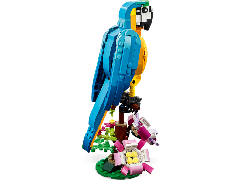 Se stavebnicí Exotický papoušek (31136) od LEGO® Creator 3 v 1 se malí stavitelé a milovníci zvířat od 7 let vypraví do pralesa, kde zažijí akční dobrodružství. Mohou se těšit na pestrobarevného papouška, který sedí na větvi, kde se otáčí a hýbe křídly a ocasem.