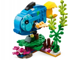 Se stavebnicí Exotický papoušek od LEGO® Creator 3 v 1 se děti od 7 let vydají do pralesa a setkají se s papouškem, rybou a žábou.