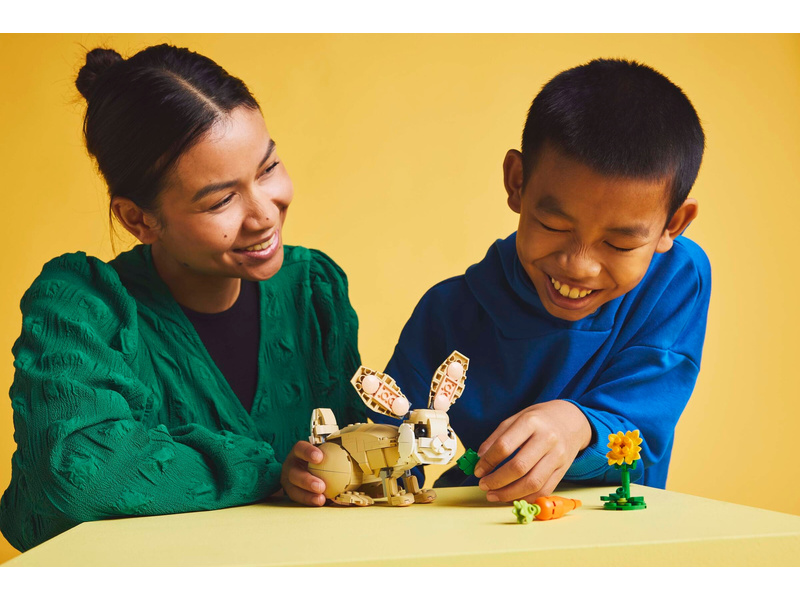 Malí milovníci zvířat od 8 let si užijí zábavná dobrodružství se stavebnicí LEGO® Creator 3 v 1 (31162) Roztomilý králíček. Tato stavebnice se zvířátky obsahuje model králíčka pro děti, který má pohyblivou hlavu, uši a přední a zadní nohy. Králíček může stát na 2 nebo 4 nohách a součástí stavebnice je i slunečnice a mrkev.