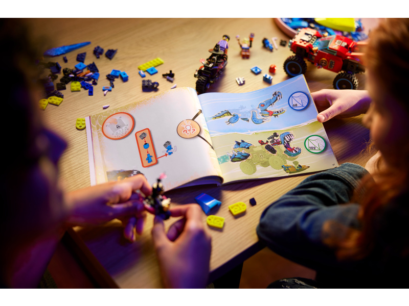 Děti od 8 let se s touto sadou LEGO® DREAMZzz™ (71458) Krokodýlí auto vydají do Světa snů. V duchu televizního seriálu tu děti vytvoří parádní auto, které pomůže zachránit Jaydena před děsivým Nočním lovcem. 1 stavebnice, 2 varianty ke stavění Herní stavebnice obsahuje 2 varianty ke stavění a mnoho návodů vedených příběhem, které dětem dávají možnost zvolit si své dobrodružství a užít si dvojnásobnou dobu hraní. Mají na výběr mezi sestavením krokodýlího auta k boji proti nočním můrám a super rychlým terénním autem a mini loďkou k jejich pronásledování. V krokodýlí verzi má auto pohyblivé ruce a nohy a v přední mřížce je ukrytý vystřelovač disků, kterým děti vystřelují disky z krokodýlí tlamy. Terénní auto má otáčecí kola a sundávací střechu, abyste dovnitř mohli posadit minifigurku. Fantastické minifigurky Stavebnice obsahuje propracované minifigurky Coopera a Jaydena a navíc Nočního lovce, který je vybavený parádní motorkou a zlým pomocníkem.