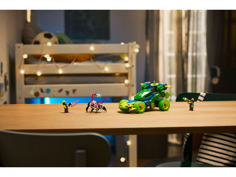 Na malé snílky čekají hned 2 možnosti sestavení této stavebnice. Užijí si spoustu zábavy při stavění základního modelu, který pak přestaví na terénní závodní auto nebo na rychlou motorku. Mezi parádní detaily patří odnímatelné čelní sklo, pojízdná kola, 2 vystřelovače šesti stře a odnímatelné moduly, které lze připojit k dalším stavebnicím z řady LEGO DREAMZzz 2025. Hrdina Mateo a padouch D-Shock vdechnou život celé akční stavebnici společně se Z-Flekem, Kybermozkovým pavoukem a Virtuálním stvořením ze Světa snů, kteří nastartují nápadité hraní.