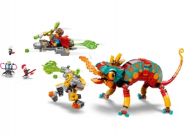 Malí snílci si užijí spoustu zábavy při stavění figurky chameleona, kterou můžou sestavit hned 2 způsoby – postaví si ohnivého chameleoního strážce s blasterovou věží a 4 vystřelovači nebo rychlý tryskáč a minirobota. Chameleon má pohyblivou tlamu, hlavu, ocas, oči a nohy a oba modely jsou nabité skvělými detaily, včetně modulárních motorů, které jsou kompatibilní s ostatními stavebnicemi z řady LEGO® DREAMZzz™ 2025 (prodávají se samostatně). Minifigurky Matea a Zeroa a figurky Logana, Z-Fleka a Kybervěci vdechnou příběhu život a inspirují k nápaditému hraní.