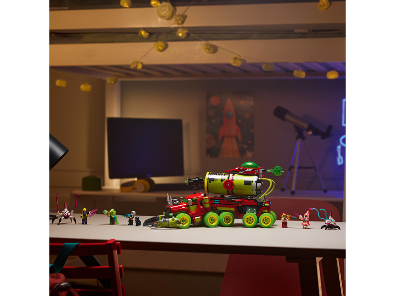 Fanoušci LEGO DREAMZzz si užijí spoustu zábavy při stavění modelu vozidla, který pak přestaví na barvu ve spreji nebo raketomet v podobě spreje. Mezi parádními detaily najdete vystřelovače, otevírací kokpit, modulární vystřelovače a spreje, které jsou kompatibilní s ostatními stavebnicemi z řady LEGO DREAMZzz 2025 (prodávají se samostatně). Stavebnice obsahuje také Matea, Coopera, pana Oze, Alberta, One, D-Shocka a 2 kybermozkové pavouky, kteří podněcují k nápaditému hraní.