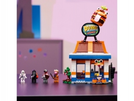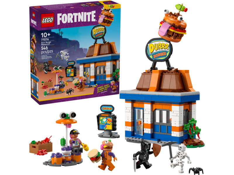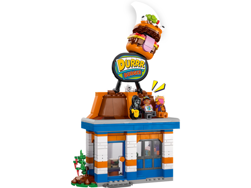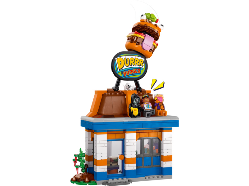 Malí gameři si užijí spoustu zábavy při skládání modulární Restaurace Durrr Burger, kterou si můžou přizpůsobit podle sebe a objevit v ní celou řadu zábavných detailů. Uvnitř budovy děti najdou pult s omáčkami, automat na nápoje a pokladnu. Venku se nachází posezení s šálkem a volským okem. Nechybí také odnímatelné podkroví s figurkou pavouka a dostatkem místa pro další doplňky, včetně lopaty a dynamitu. Minifigurky Beach Bombera, Beef Bosse, Grimeyho a kostlivce vdechnou stavebnici život a inspirují děti k nápaditému hraní.