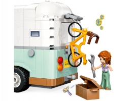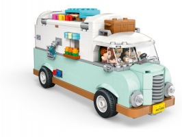 V této stavebnici karavanu pro děti najdete vše, co malí průzkumníci potřebují k vyprávění vlastních příběhů o kempování. Kamarádi sedí v kabině řidiče a hledají dokonalé místo na zaparkování v lese. Otevřete karavan a odhalte vybavenou kuchyň a toaletu. Zaručeně uslyšíte chichot, když děti uvidí, jak po „spláchnutí“ záchodu mizí odpad! Schody vedou do prostoru na spaní, kde je postel pro každou ze 3 minipanenek. Mezi další detaily patří kolo, na kterém mohou postavičky jezdit, piknikový stůl s židlemi, venkovní sprcha a kempingové doplňky včetně kompasu, klíče a dalekohledu.