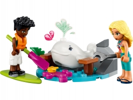 - 2 postavy a doplňky – Ve stavebnici najdete postavy LEGO® Friends Zaca a jeho učitelku Diu. Součástí je také běluha, kterou děti zachrání z hromady dřeva a kamení na pobřeží