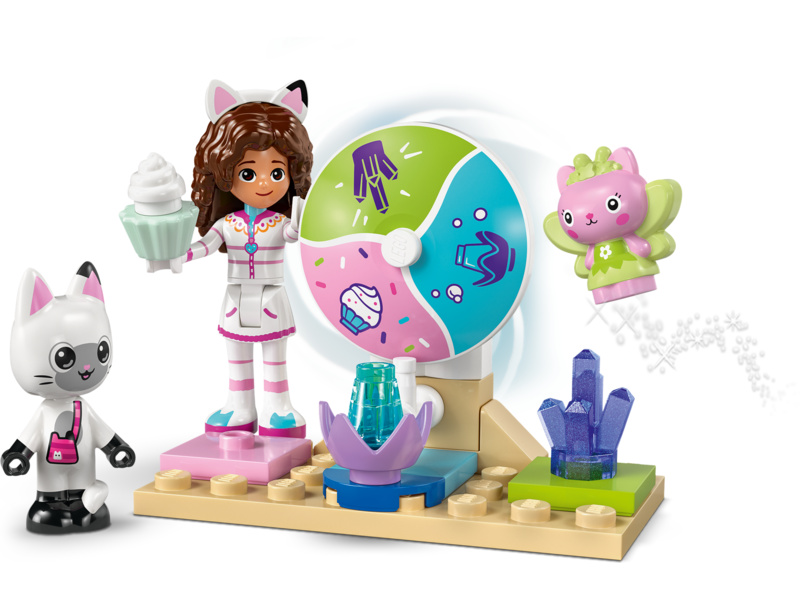 Tato kreativní stavebnice obsahuje 2 filmová místa a celou řadu figurek LEGO, včetně Gábi, Pandyho Ťapky a Víly kočičky. Děti se vydají do kouzelného světa sladkých dobrot na Cukrové hoře. Postavičky se můžou sklouznout po barevném vodopádu na donutech. Kočičí zahrádka je fantastické útulné místečko, kde Víla kočička sedí na svém křišťálovém květinovém trůnu a kde děti najdou spoustu překvapení. Díky barevnému obrázkovému návodu, velké začátečnické kostce a samostatným sáčkům – v každém sáčku najdete kostky na sestavení jednoho modelu – se děti můžou bez zaváhání pustit do stavitelského dobrodružství.