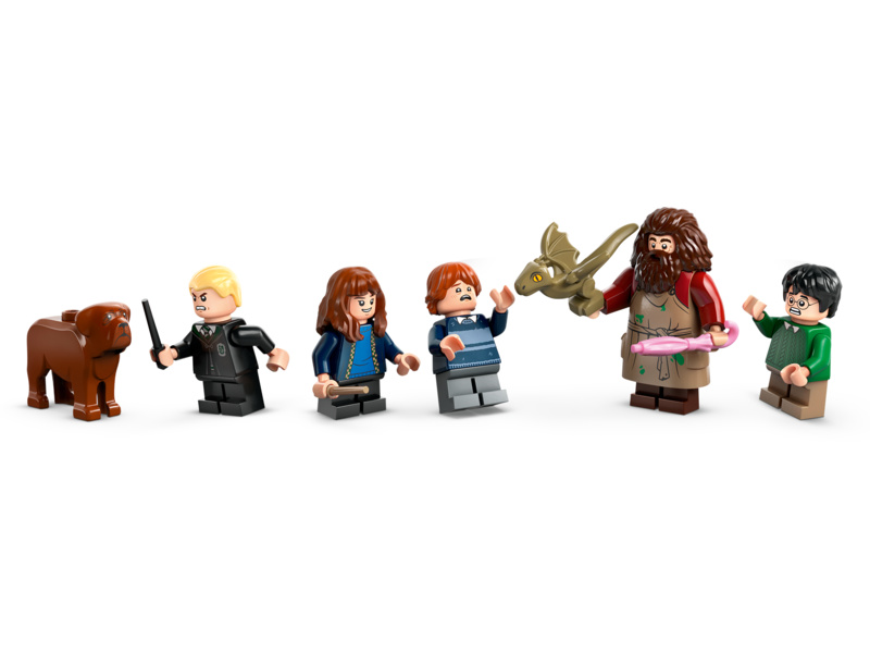 Součástí této stavebnice slavného místa ze světa Harryho Pottera je také 5 minifigurek LEGO – Harry Potter, Hermiona Grangerová, Ron Weasley, Draco Malfoy™ a Rubeus Hagrid – a také figurka Norberta a Tesáka.