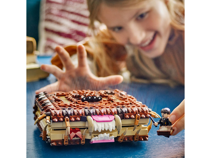 Darujte malému kouzelníkovi, čarodějce nebo mudlovi hodiny kouzelného hraní se stavebnici LEGO® Harry Potter™ (76449) Hryzající kniha Obludné obludárium. Tato zábavná fantasy stavebnice obsahuje propracovanou kostkovou repliku Obludného obludária, učebnice o péči o kouzelné tvory. Model má skrytá kola a natahovací funkci – knihu položte na rovnou plochu, natáhněte, pusťte ji a sledujte, jak se řítí pryč a při tom žvýká.