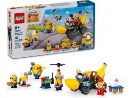 Hledáte stavebnici LEGO s mimoni, autíčkem nebo zábavný dárek? Stavebnice Mimoni a banánové auto se sedadlem pro řidiče a odnímatelným motorem je pro vás to pravé! Součástí jsou 4 mimoni a řada doplňků. Mega mimoň Dave jednou rukou zvedne motor a ve druhé drží činku. Mel maluje obrázek banánu a tajný agent Antipadoušské ligy, mimoň Tim, létá kolem s vrtulí na hlavě a s dálkovým ovladačem v ruce. Na zemi stojí jeho pracovní stanice se speciálními nástroji, včetně rentgenových brýlí. Mechanik mimoň Ron má službu u přebalovacího pultu s plenkami. Nechybí mu potřebné vybavení, včetně zbraně, která vystřeluje použité plenky. Stavitelé mohou přibližovat a otáčet stavebnice v zábavné aplikaci LEGO Builder.