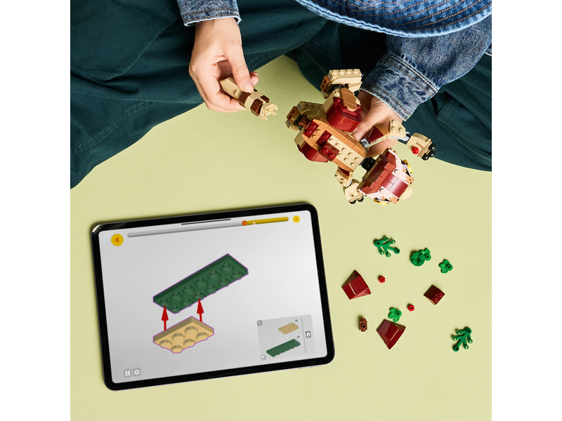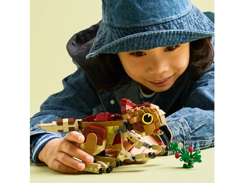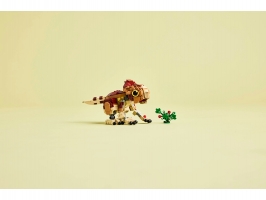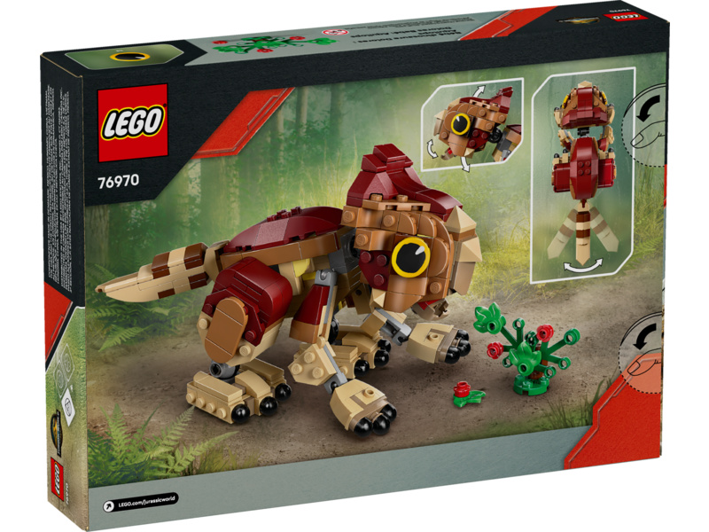 Děti a fanoušci od 7 let rozšíří svou sbírku dinosaurů a vydají se na dobrodružství se zábavnou stavebnicí LEGO® Jurassic World (76970) Dinosauří mládě Dolores: Aquilops. Tato výstavní stavebnice obsahuje figurku malého aquilopse z kostek a sestavitelnou rostlinu s květinami. Model mláděte Dolores má pohyblivou hlavu, ruce a nohy, díky kterým ji můžete libovolně napolohovat, a navíc pohyblivý ocas a otevírací čelist, kterou dává najevo potěšení, když si pochutná na rostlině. Jakmile hraní skončí, můžete si tento roztomilý model dinosaura umístit na polici nebo na stůl a pochlubit se jím.