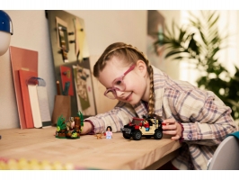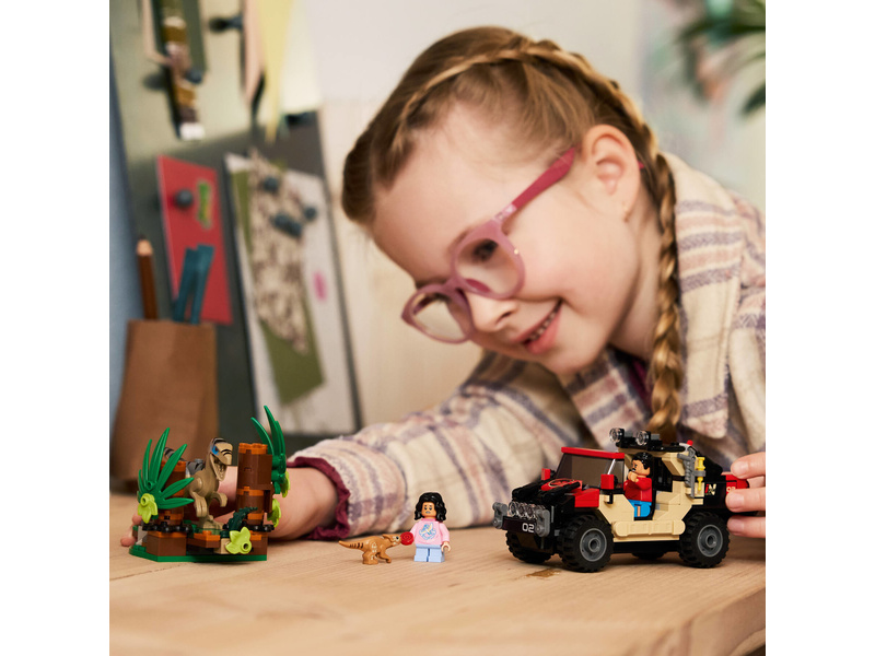 Stavebnice LEGO® Jurassic World (76972) Únik před raptorem v terénním autě je inspirovaná filmem Jurassic World: Rebirth a poslouží jako skvělý dárek pro kluky a holky od 6 let, kteří milují tyto pravěké tvory. Až děti stavebnici poskládají, připomenou si své oblíbené filmové scény nebo vymyslí nové příběhy s minifigurkami Reubena a Isabelly Delgadových, figurkou mláděte dinosaura Dolores a figurkou velociraptora s pohyblivou čelistí. Stavebnice obsahuje terénní auto a sledovací zařízení, keř se efektem „překvapení“, který můžete použít během hry s velociraptorem, a spoustu dalšího.