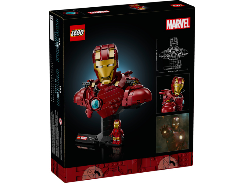 Stavebnice LEGO® ǀ Marvel (76327) Busta Iron Man MK4 vzdává hold jedné z nejoblíbenějších postav filmového světa Marvel. Model se skládá z 436 dílků a má pevnou základnu. Představuje působivý sběratelský kousek, který potěší zkušené modeláře, fanoušky Marvelu a dospělé milovníky superhrdinů.