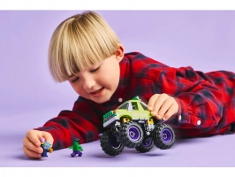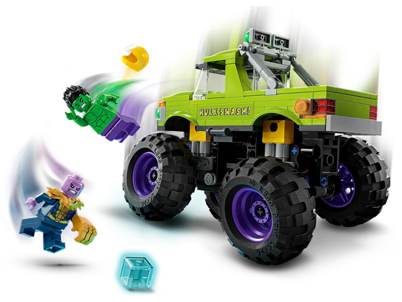 Tento sestavitelný výkonný truck LEGO ǀ Marvel obsahuje minifigurku Hulka s odnímatelnou helmou a minifigurku Thanose s teseraktem a Rukavicí nekonečna. Superhrdinský truck má zvedací kabinu s přístupem na sedadlo řidiče a místem pro minifigurku Hulka. Vnější strana trucku je zelená a zdobí ji nápis „Hulk Smash!“ a Hulkův obličej. Díky velkým otočným kolům, robustní konstrukci a odpružení zvládne tento mega truck i ty nejnáročnější mise. Pro ještě větší digitální zábavu si stavitelé můžou přibližovat a otáčet modely ve 3D a sledovat svůj pokrok pomocí zábavné a intuitivní aplikace LEGO Builder. Model obsahuje 229 dílků.