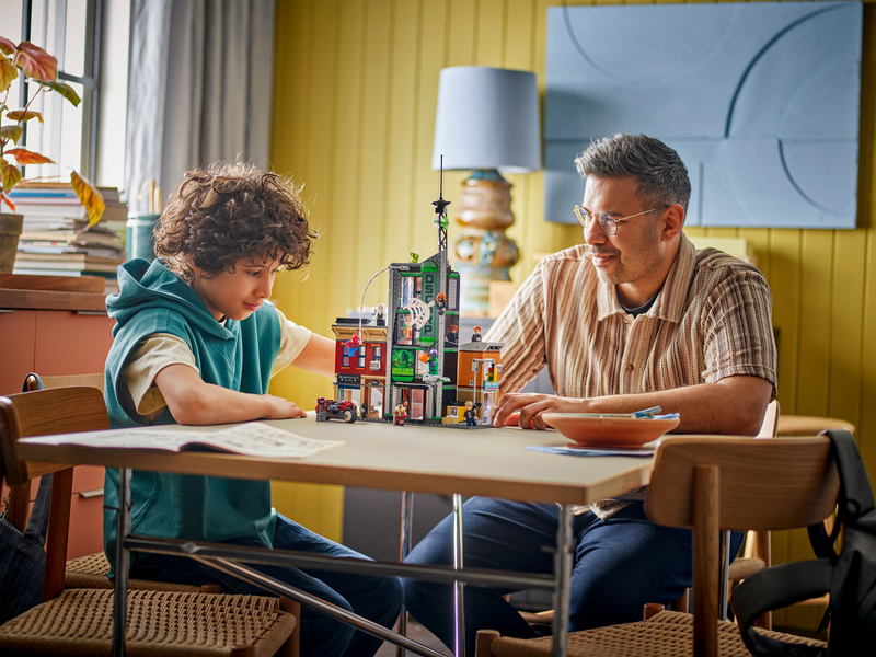 Pouliční scéna obsahuje 3 samostatné budovy: byt Milese Moralese s klenotnictvím v přízemí, kancelářskou budovu Oscorp a Venomův byt s večerkou v přízemí. Každá místnost obsahuje příslušné vybavení a doplňky. Osm minifigurek LEGO z filmů od studia Marvel se postará o nekonečné akční hraní s pavučinami: Spider-Man, Spider-Woman, Miles Morales s motorkou, Eddie Brock, Ghost-Spider, Norman Osborn, lovec Kraven a Zelený Goblin s kluzákem. Díky průhledným tyčím můžou děti umisťovat a polohovat postavy do realistických póz. Stavějte tuto zábavnou stavebnici společně s přáteli a rodinou pomocí aplikace LEGO® Builder. Stavebnice obsahuje 808 dílků.