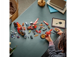 Děti od 8 let si se stavebnicí Bojového vozidla 3 v 1 připomenou scény z 3. řady televizního seriálu NINJAGO® Dračí povstání. Děti si můžou hrát s velkou akční figurkou nindžovské motorky.